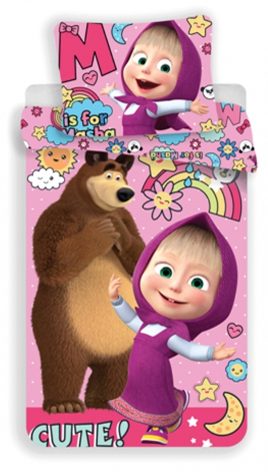 Roztomilý ,,ruský večerníček", který je krásně zpracovaný, že zaujme snad každé dítko, a dostatečně vtipný, aby zabavil i starší diváky. Tak by se dala ve zkratce popsat pohádka jménem Máša a medvěd. Pokud i vaše dítko bezmezně miluje zapeklité situace, do nichž se nezbedná holčička Máša se svým medvědím kamarádem dostává, barevné povlečení s touto vtipnou dvojicí ho rozhodně potěší. Povlečení je rovněž vyrobené ze 100% bavlny a navíc opatřené praktickým zipem, který vám usnadní manipulaci při povlékání postele.