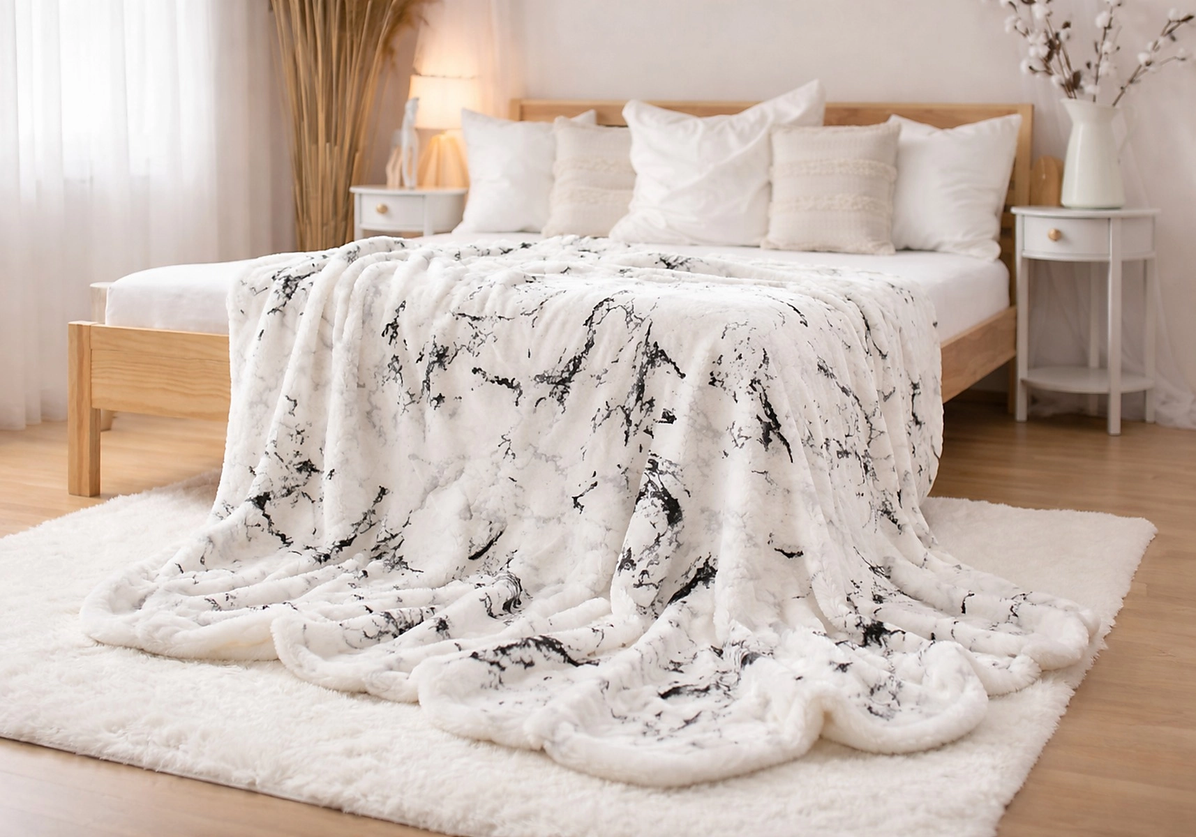 Mikroplyšová deka s beránkem - Mramor bílý