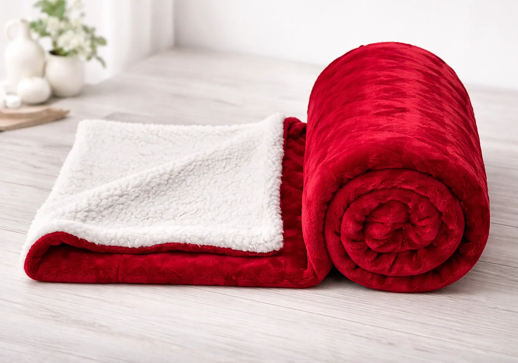 Mikroplyšová deka s beránkem - Červená s trojúhelníky