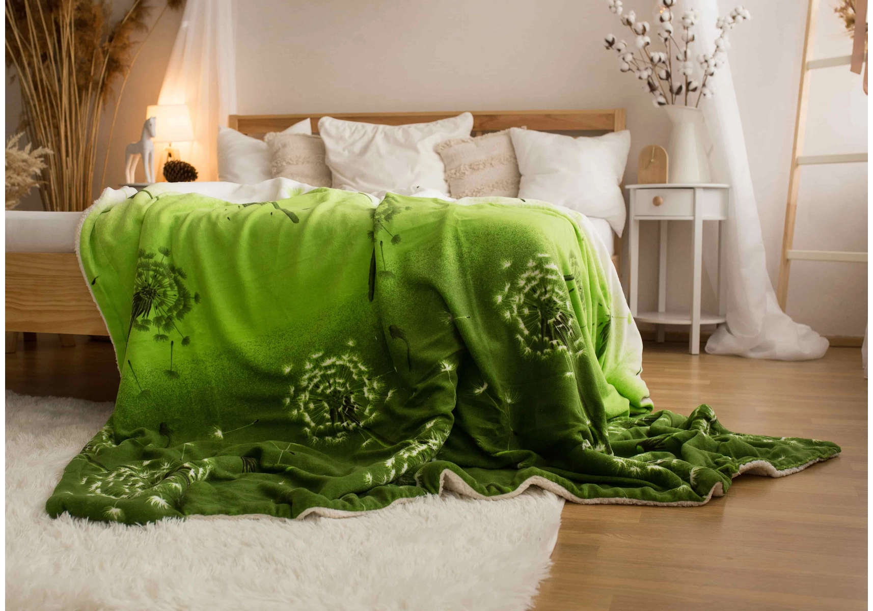 Mikroplyšová deka s beránkem - Pampeliška zelená