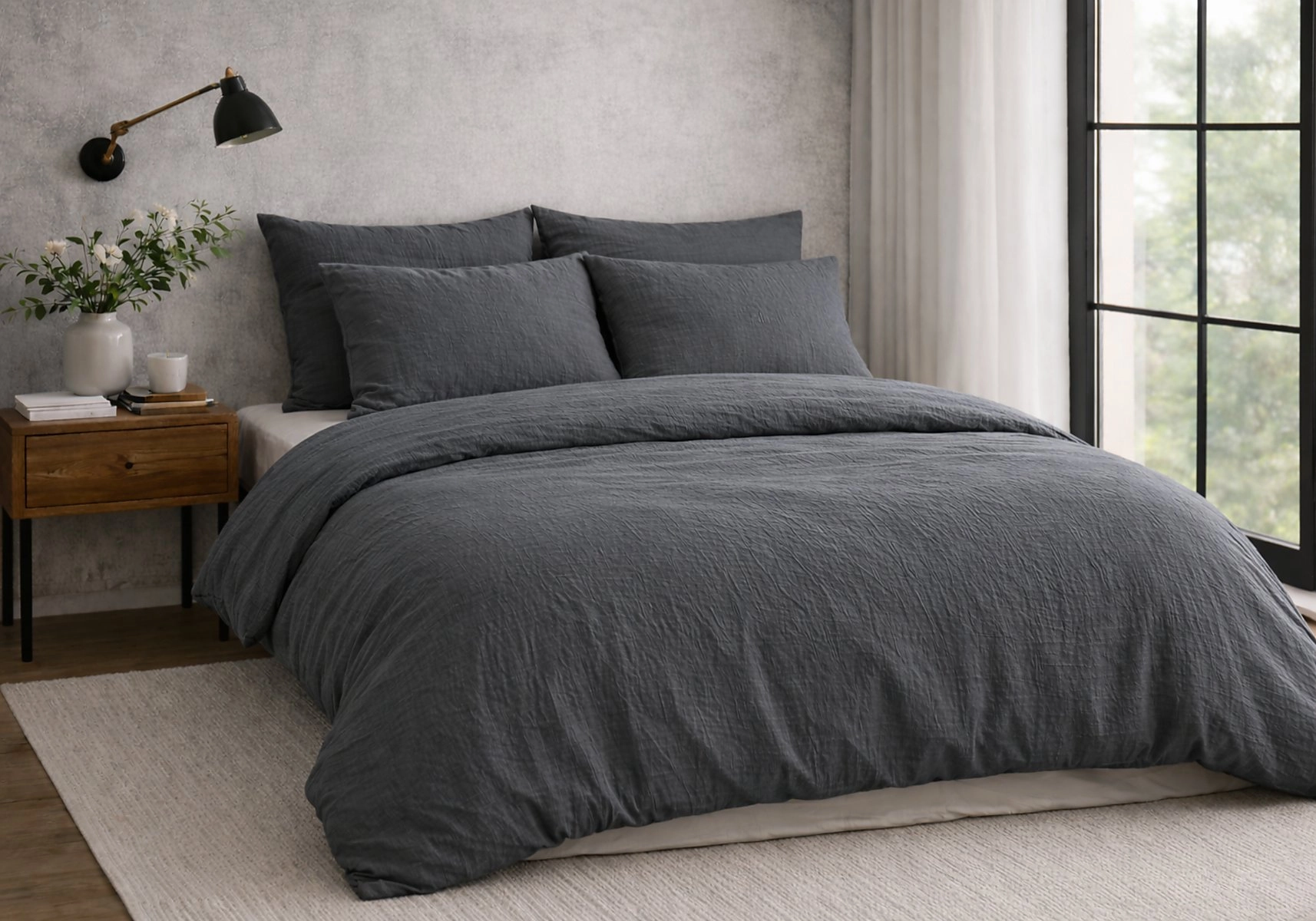 Luxusní mušelínové povlečení v tmavě šedém odstínu s jemným antracitovým nádechem. Nadčasová a elegantní barva, která nepůsobí tvrdě ani studeně, ale klidně a harmonicky. Lehký a vzdušný mušelín je velmi příjemný na dotek a zajistí pohodlí po celý rok. Dostupné ve standardních rozměrech i na míru.