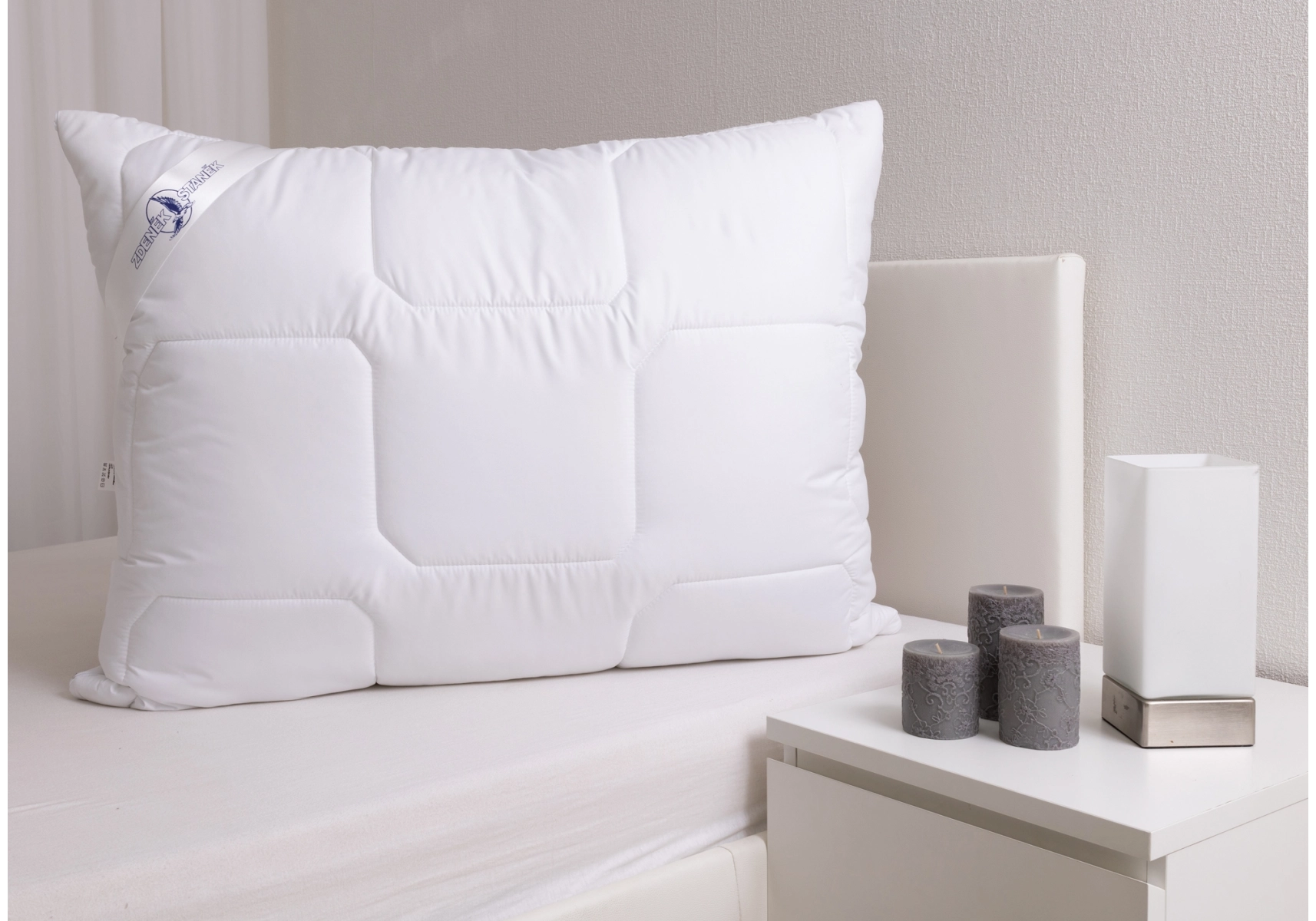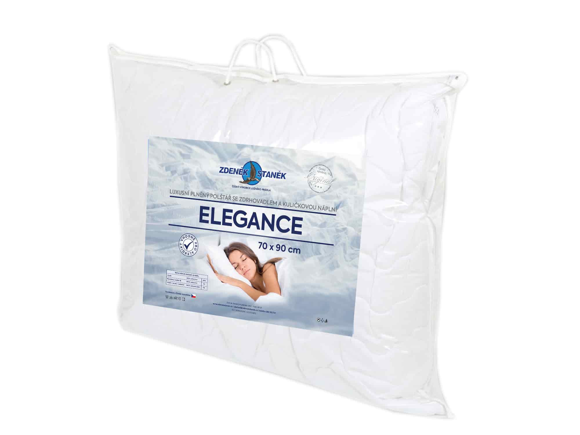 Luxusní polštář Elegance, který má stejnou povrchovou látku a vzor prošití jako celoroční přikrývka Elegance. Obal polštáře je vyrobený z polymicrofiberu a jemného navolněného rouna (250g/m2), které je jemně prošité, což zajišťuje měkkost a prodyšnost.