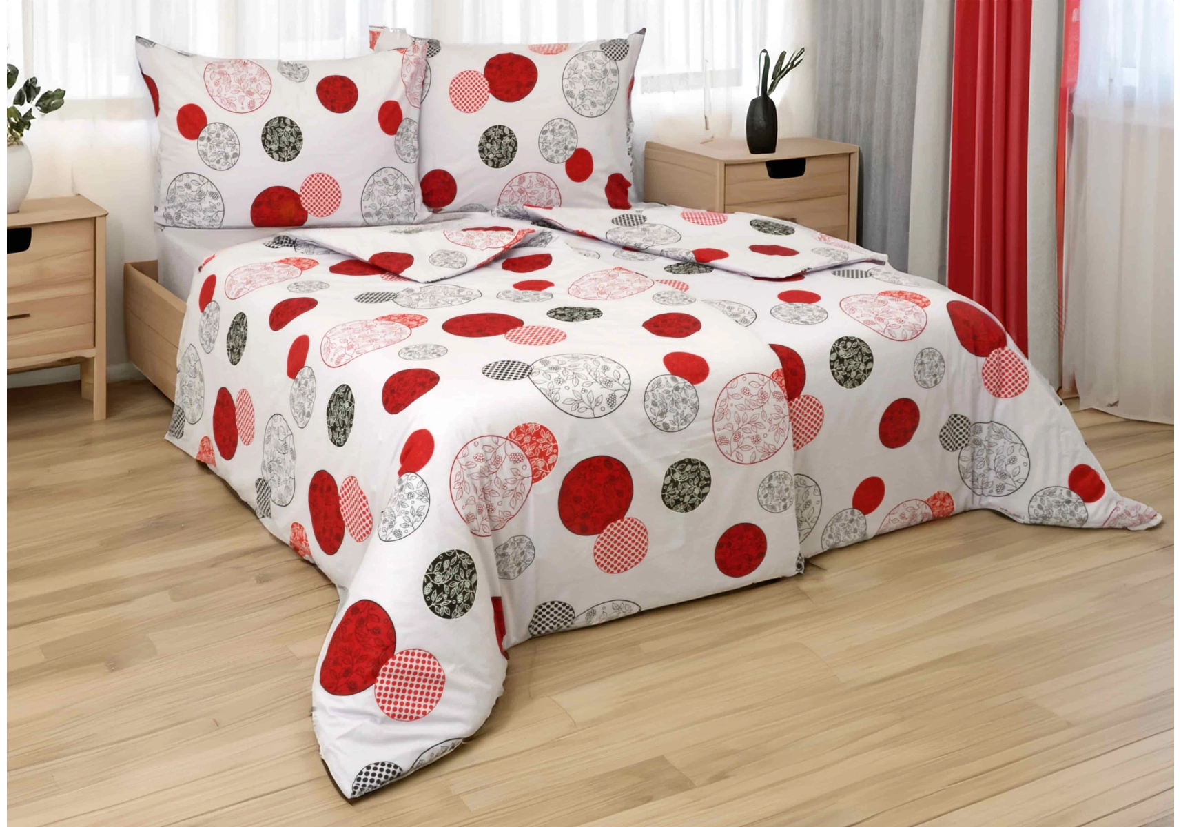 Bavlněné povlečení Červená kola na fialkovém podkladu II. jakost