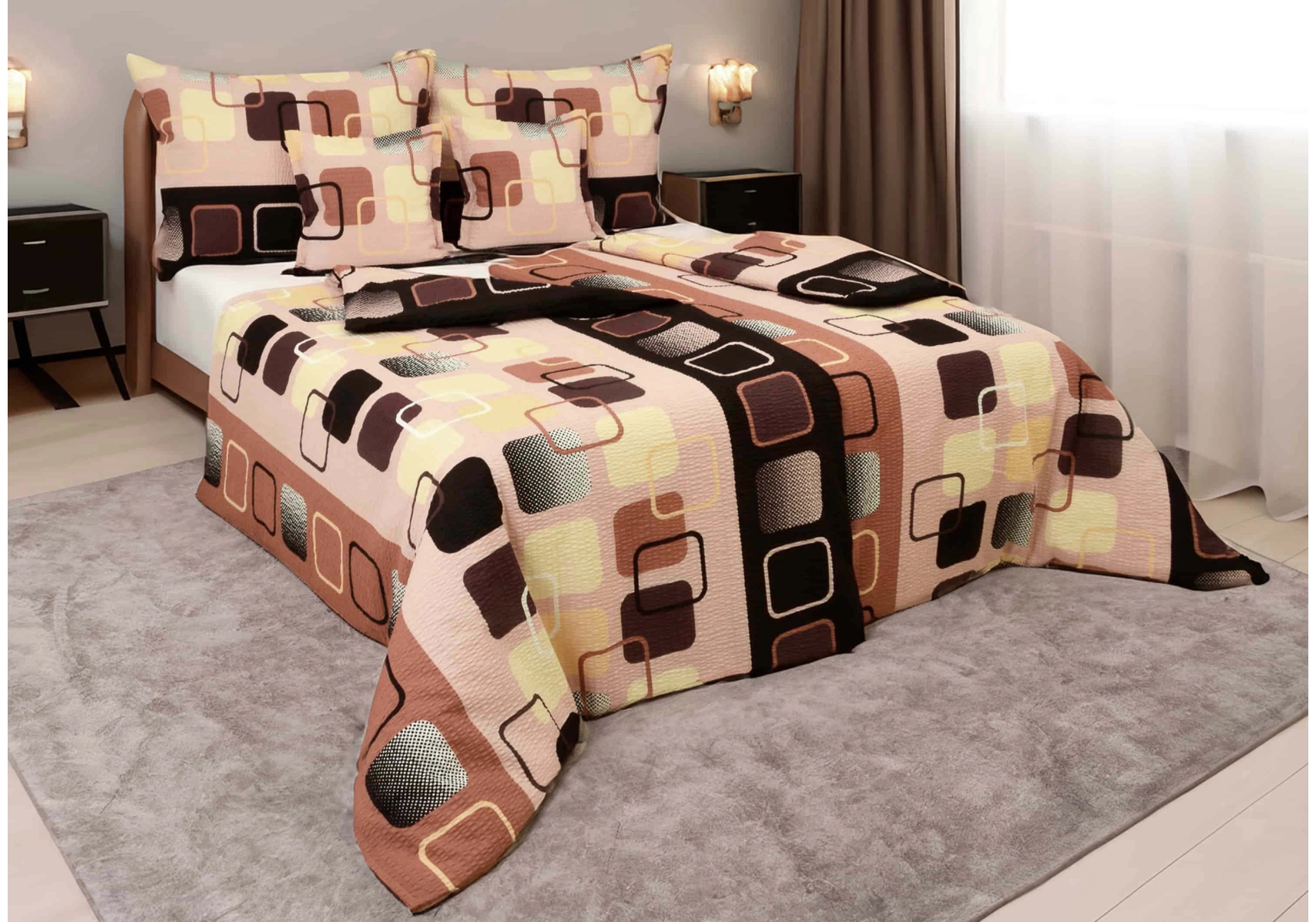 Ložní povlečení krep Hnědobéžové kostky II. jakost