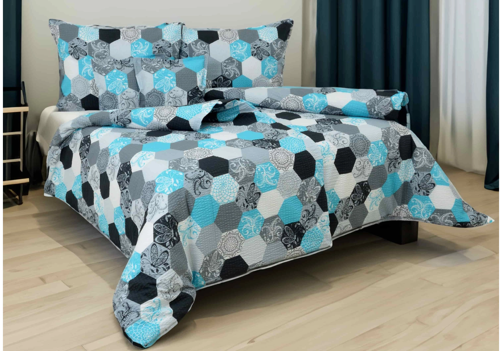 Krepové povlečení LUX Mozaika modrá II. Jakost